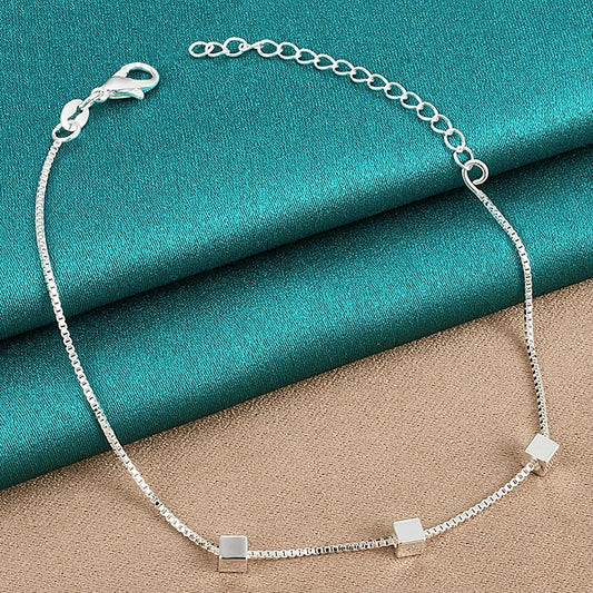 10" 925 Sterling Silver Small Box Charm Beads Bracelet