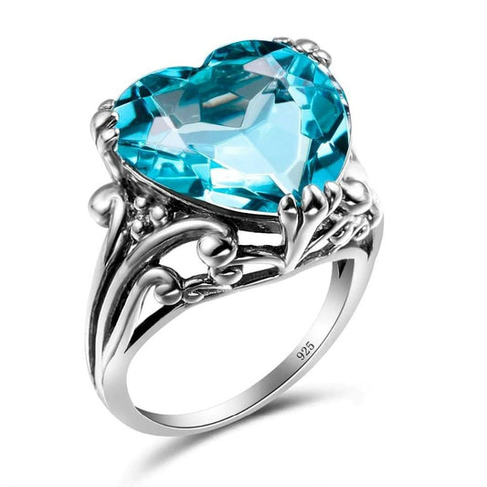 12mm Blue Aquamarine Silver Tone Heart Shaped Ring