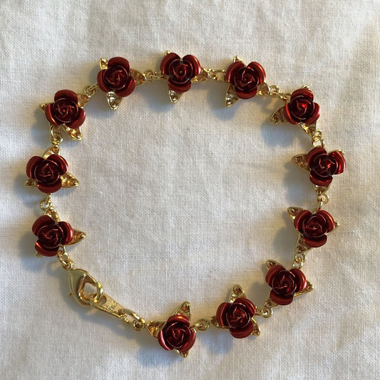 "12 Reason's" A Dozen Red Roses Gold Charm Bracelet