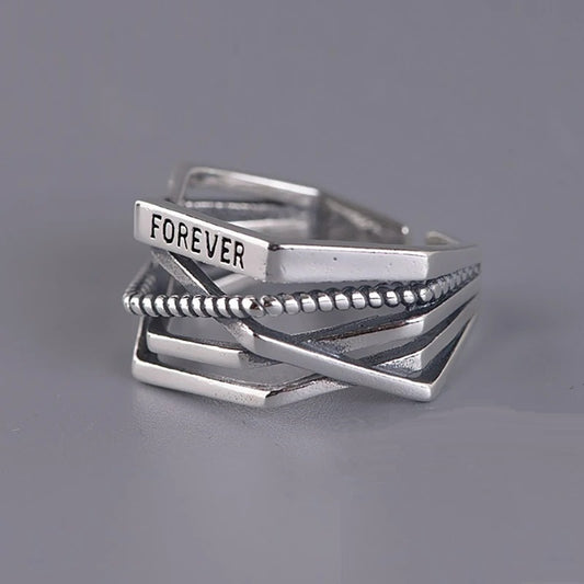 "FOREVER" Gothic Statement Ring - Adjustable Vintage Silver Aesthetic
